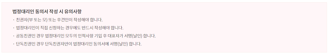 법정대리인의 신청 시(친권자, 후견인) 기본 구비 서류